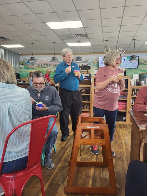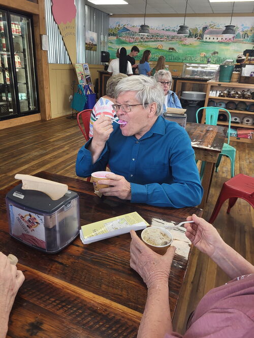 They spent the morning taking in the bright colors and creative charm of the historic Vollis Simpson Whirligig Park, followed by a delicious, down‑home meal at Parker’s BBQ. Their final stop at Simply Natural Creamery was the perfect sweet ending to a day filled with fellowship and lots of fun.